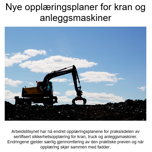 Regelverket presiserer videre at eleven skal avlegge avsluttende praktisk prøve med en reell kran, truck eller masseforflyttingsmaskin.