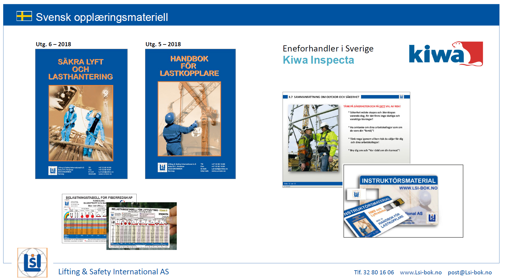 LSI-har sammen med vår samarbeidspartner og forhandler KIWA i Sverige bidratt med kompetanse og materiell til bedre opplæring av anhukere (lastkopplare) og signalgivere i Sverige.